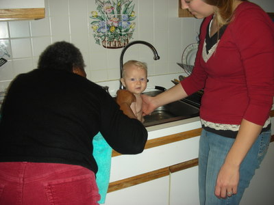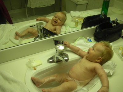 Kaden had one of his baths in New Jersey in the kitchen sink.