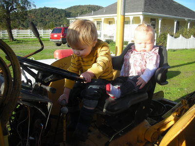 Kaden and his cousin Beckem were working on the ranch together while they spent a couple of weeks together in California. As you can see Beckem was teaching Kaden how to work the controls.