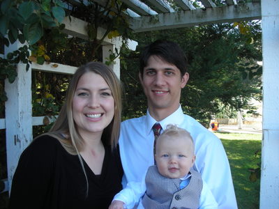 We took this picture at Grandma and Grandpa Baguley's because Kaden looked so handsome in his new suit we got for his baby blessing.